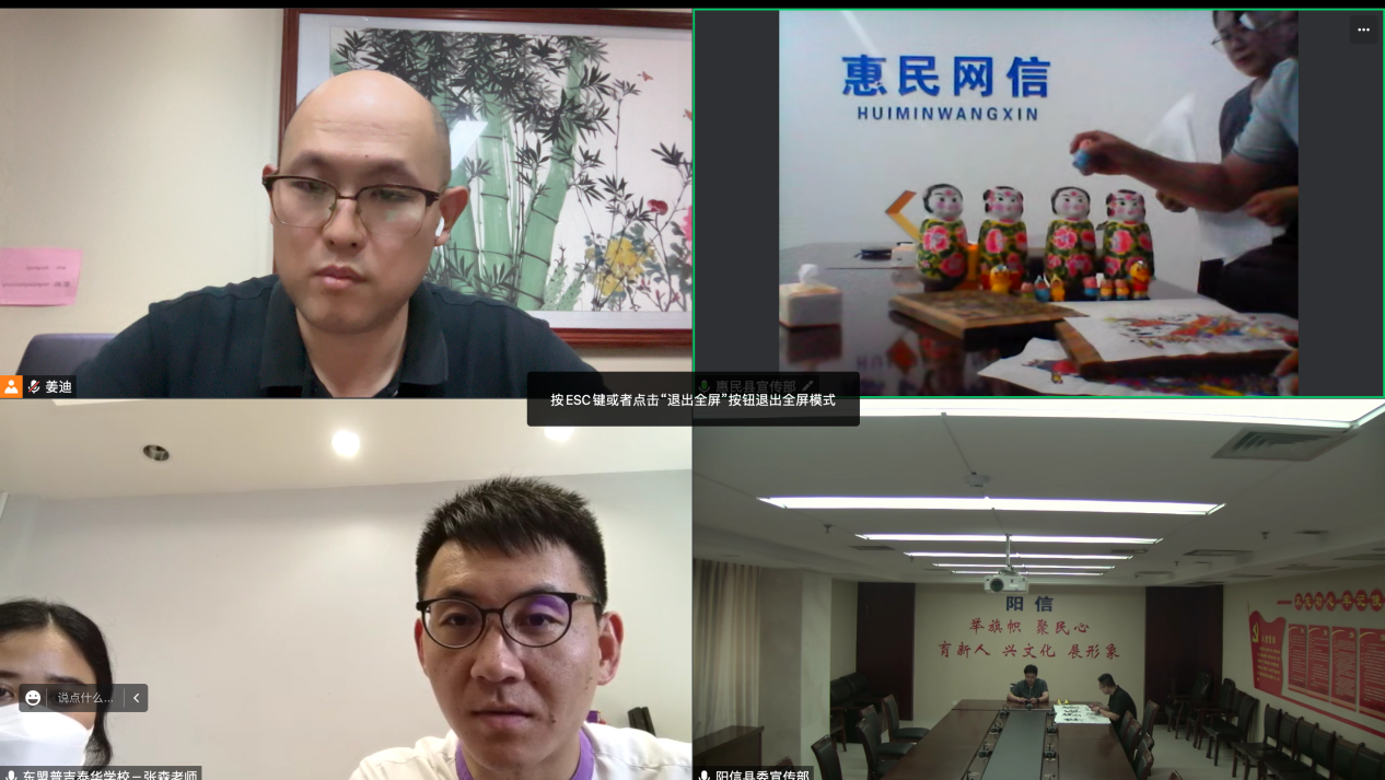 โดยท่านเฉิน ลุ้ย ผู้อำนวยการศูนย์แนะแนวอารยธรรมยุคใหม่และผู้อำนวยการสำนักงานประชาสัมพันธ์ของมณฑลหยางซิน ,ท่านหลี่ ซินลุ้ย ผู้อำนวยการสำนักงานข่าว,ท่านลู่ เฉาฉุน ผู้อำนวยการสำนักงานประชาสัมพันธ์ของเมืองชิงเหอ มณฑลฮุ่ยหมิน ท่านเจียง ตี๋ สื่อมวลชนจากบริษัทเพิง จวู้ เข้าร่วมการประชุม ด้วยวิธีการวิดีโอคอลกับอาจารย์จาง เซิน จากโรงเรียนภูเก็ตไทยอาเซียนวิทยา ทั้งสองฝ่ายได้มีการพูดคุยและแลกเปลี่ยนกันในเรื่อง "การบริจาคมรดกทางวัฒนธรรมที่จับต้องไม่ได้"และ"การเรียนการสอนออนไลน์ เพื่อสร้างห้องเรียนร่วมกัน" และเรื่องอื่นๆในรูปแบบการสนทนา เพื่อทำการแลกเปลี่ยนความคิดเห็น